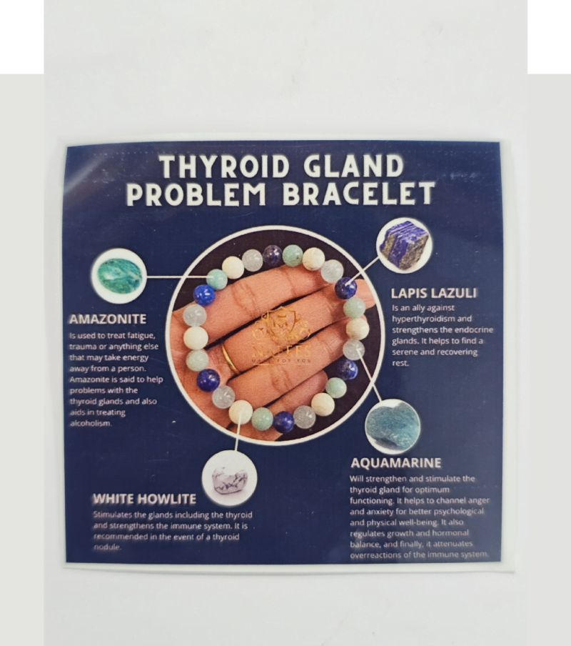 लापीस लाजुली:- गले, स्वरयंत्र और स्वर तंत्रियों के लिए फायदेमंद है और अंत:स्त्रावी और थायरोयड ग्रंथियों को विनियमित करने में मदद करता है। अतिगलग्रंथिता के खिलाफ एक सहयोगी और अंत:स्त्रावी ग्रंथियों को मजबूत करता है। यह एक शांत और ठीक होने वाले आराम को खोजने में मदद करता है।