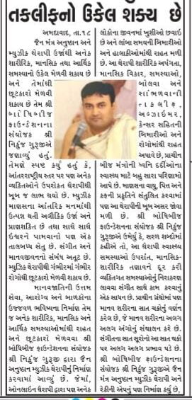 समाचार में आगे न्यूज पेपर में जैन अनुष्ठान म्युजिक थेरेपी का 20 02 2020  का विशेष अहेवाल