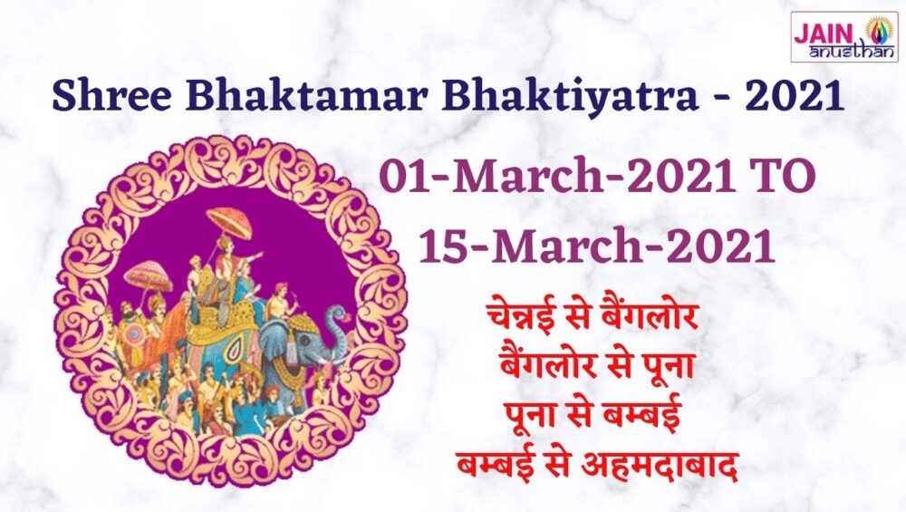 तारीख : 1-मार्च-2021 से 16-मार्च-2021 पुरे चेन्नई से मुंबई के अलग अलग सिटी में सामूहिक श्री भक्तामर हीलिंग एवं संकल्प सिद्धि अनुष्ठान